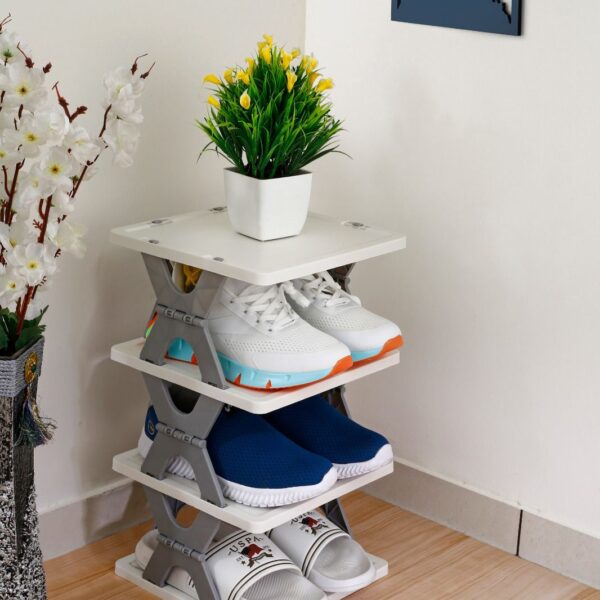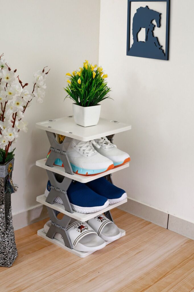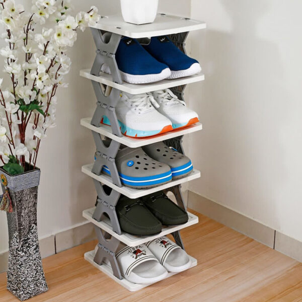 Multi-Use Organizer: This versatile storage rack is perfect for shoes, plants, bags, toys, books, and more, adding functionality to any room. Sturdy & Durable: Made from strong plastic, this shoe rack offers long-lasting stability with a fixed-height design for easy use. Space-Saving & Versatile: Compact design maximizes storage, perfect for shoes, slippers, or books, optimizing your living space. Customizable & Stackable: Adjust the height and width for a personalized storage solution to fit your space. Easy Assembly: With strong buckles and clear instructions, this shoe rack is quick to assemble and offers a stable, reliable structure.