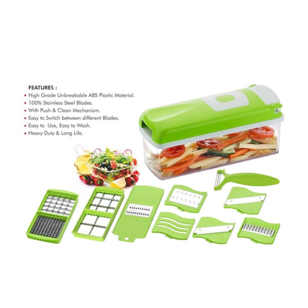 - [Multi-function vegetable cutter]: new vegetable cutting storage combination, 13 kinds of blades can be switched at will, upgraded transparent fresh-keeping box, replaceable drain basket, cut-proof gloves, hand guards, egg separators, cleaning tools, etc.